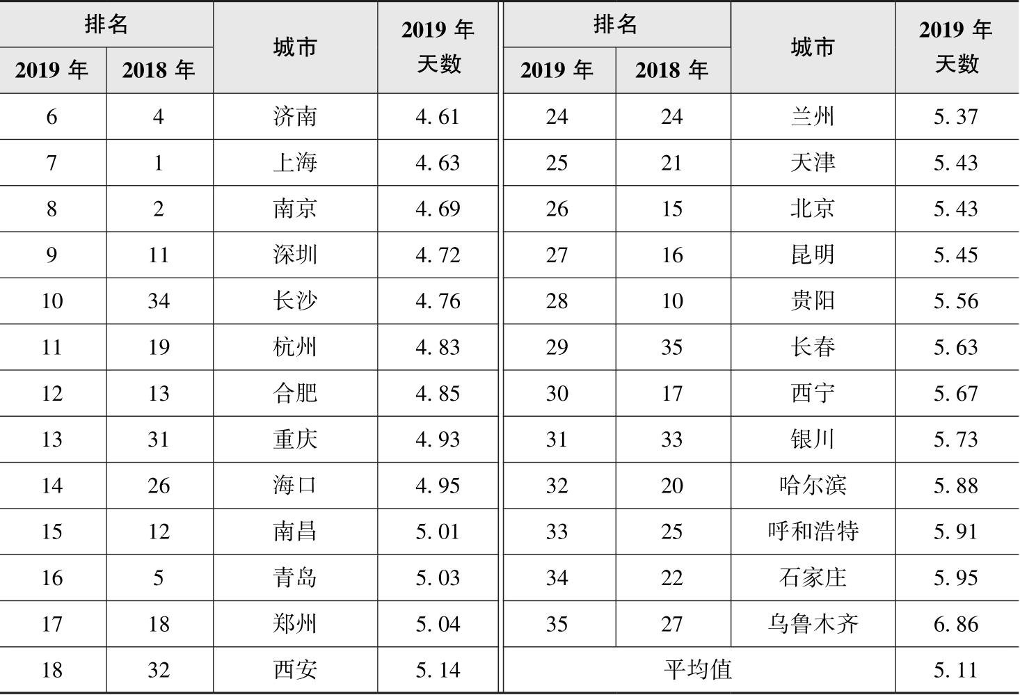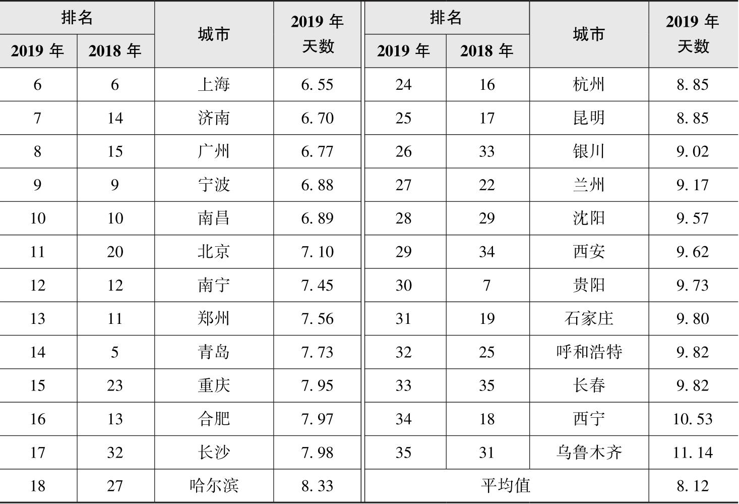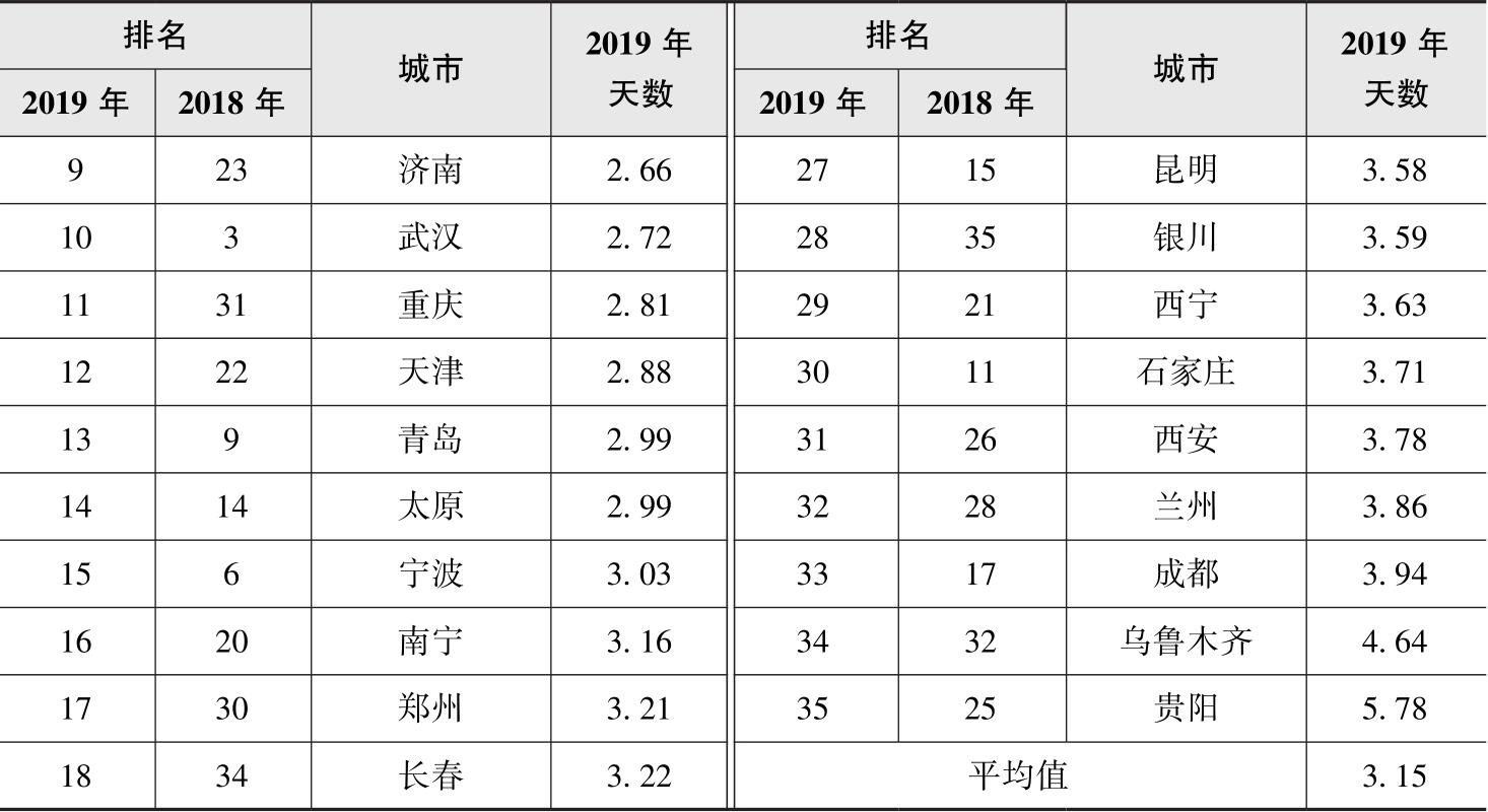 表9 2019年中国35个城市居民过去30天中身体不够健康的天数