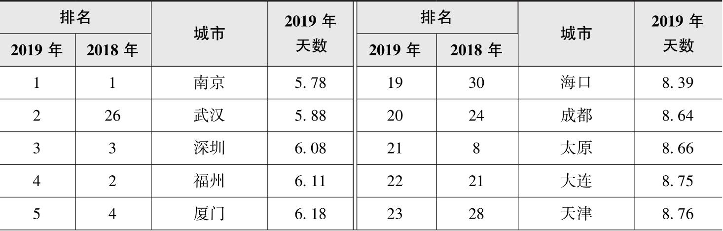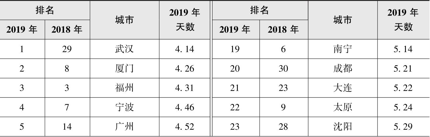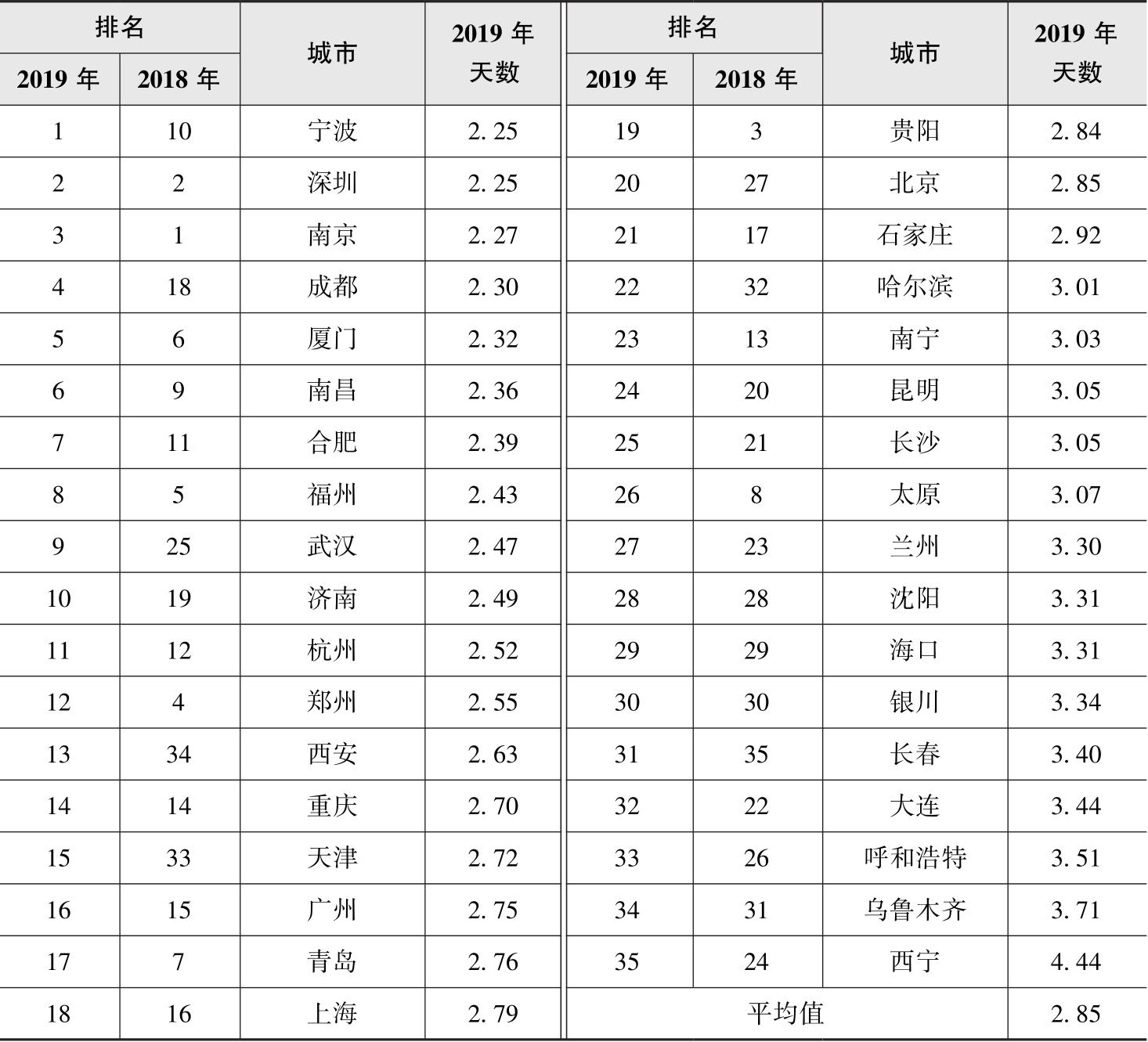 表10 2019年中国35个城市居民过去30天中心理不够健康的天数