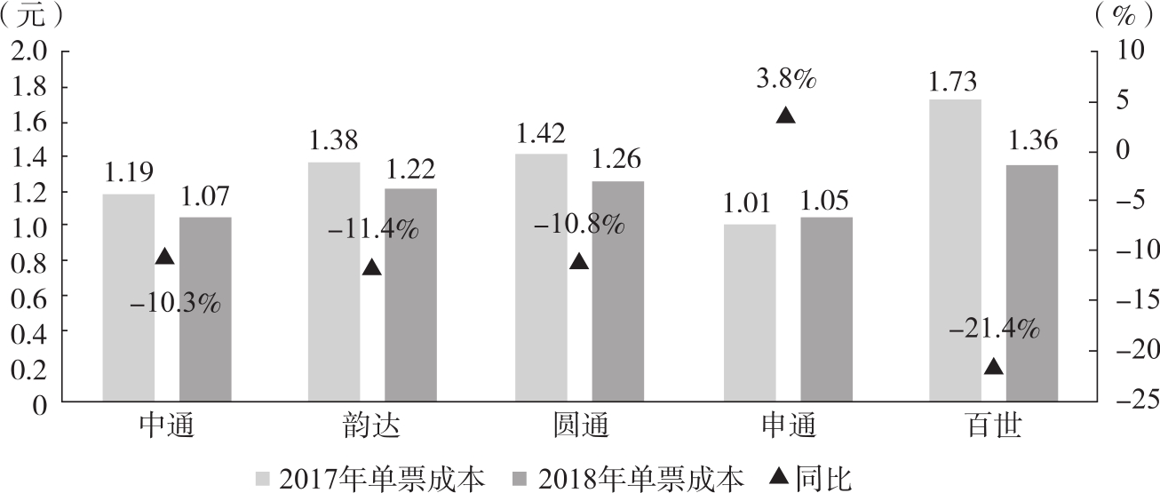 图1-8 2018年主要快递公司单票成本下降情况测算