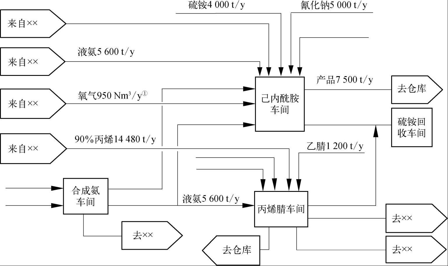 (7)在物料流程线的起点或者终点位置,标注物料的来源与去向。