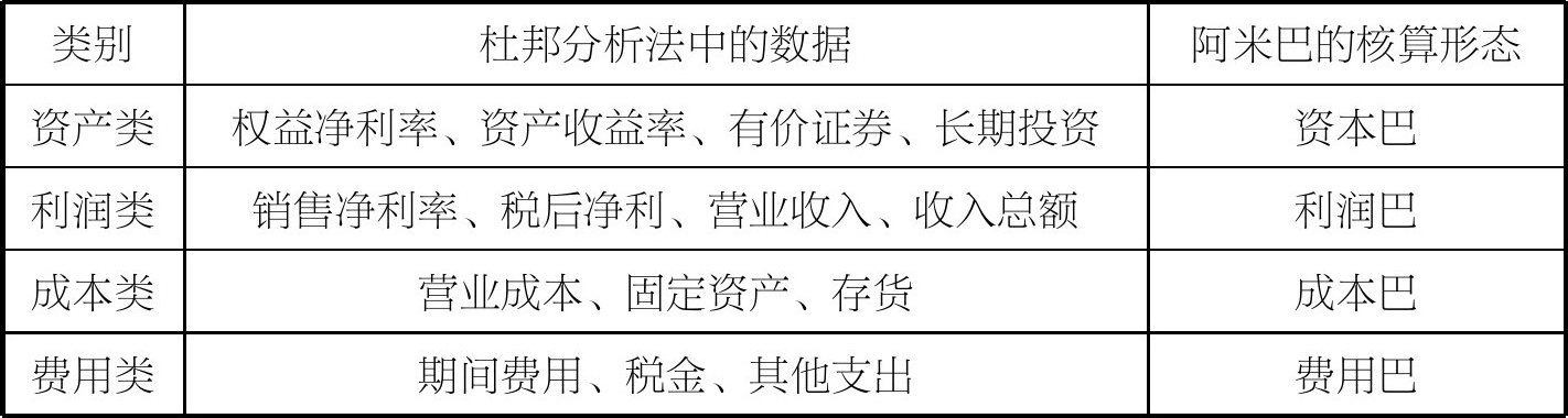 表4-2 杜邦分析法中的关键数据分类归纳