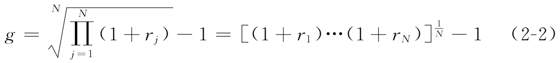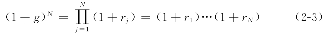 通常我们会将式(2-2)写成如下更自然的形式,它表明g是该资产在N个周期上的平均累积收益: