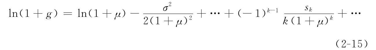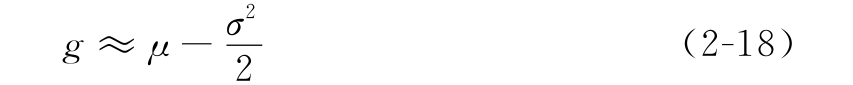 ·式(2-18)相对于式(2-17)的近似误差量级为O(μσ 2 )。当μ和σ都很小时,式(2-17)相对于式(2-16)的误差比O(μσ 2 )更小。在此条件下,用μ-σ 2 /2近似替代几何收益率的误差量级为O(μσ 2 )。