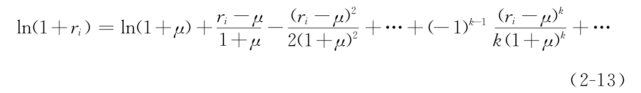 当收益很小时,我们可以用r=0附近的泰勒(Taylor)展开式来近似代替上式右端的对数函数,即ln(1+r