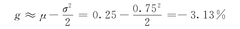 当单期收益率大小适度时,式(2-14)的条件应该被满足。然而,当某期收益是一个极端正向离群值,即远高于其他各期收益时,上述条件可能就不被满足了。