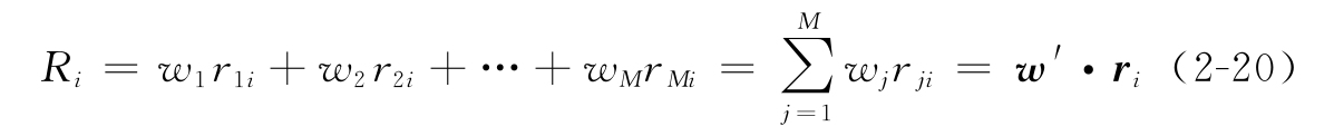 在第i期,这些资产的收益为r 1i ,r 2i ,…,r Mi ,这也可以用收益向量来表示,即r i =(r 1i ,r 2i ,…,r Mi )′。于是,投资组合在周期i上的收益是