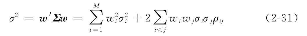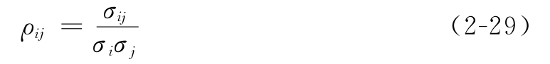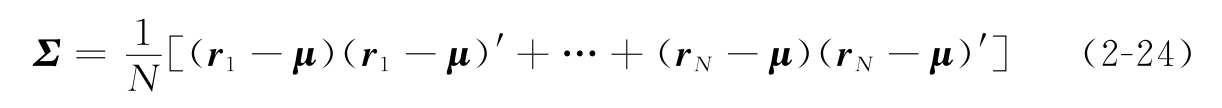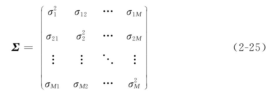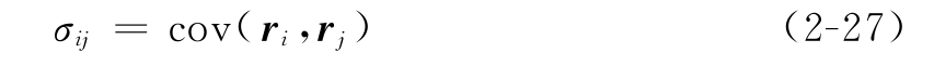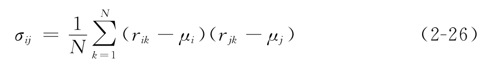 )。对角线元素是单个资产的方差,定义为式(2-6),其变体在式(2-7)和式(2-8)中。非对角元素是成对资产之间的协方差,由下式给出: