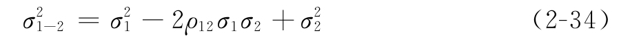 例2.5: 我们也可以在式(2-32)中取w 1 =1和w 2 =-1来推导出两个资产收益率差值的波动率,即