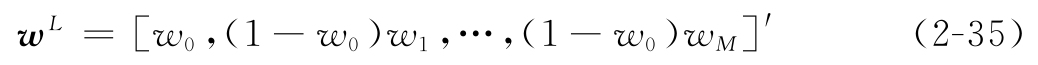 由于无风险资产没有收益波动性,因此杠杆投资组合的波动率是原始纯多头组合波动率的(1-w 0 )倍。L=(1-w 0 )是投资组合的杠杆。我们指出,如果w 0 >0,结果同样有效。当0<w 0 <1时,最终投资组合权重(式(2-35))均为正。当w 0 >1时,最终投资组合做多无风险资产,而做空原始多头组合。