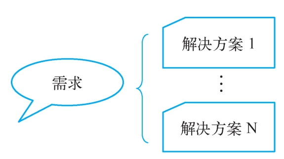 但产品经理不能把用户提出的解决方案当需求来接受。如图1-4所示,实现需求的办法有很多,解决方案也不止一个,提出需求的人的解决方案只是其中一种。接受了这个解决方案就是接受了某个选择,同时舍弃了其他更多的可能性。