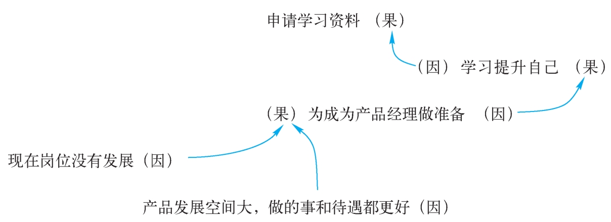 在询问用户的表面需求产生原因时,通常回答会形成因果链,如下所示。