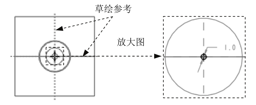 按钮,选取ADTM2基准平面为草绘平面,图2.6.10所示的坯料表面为参考平面,方向为