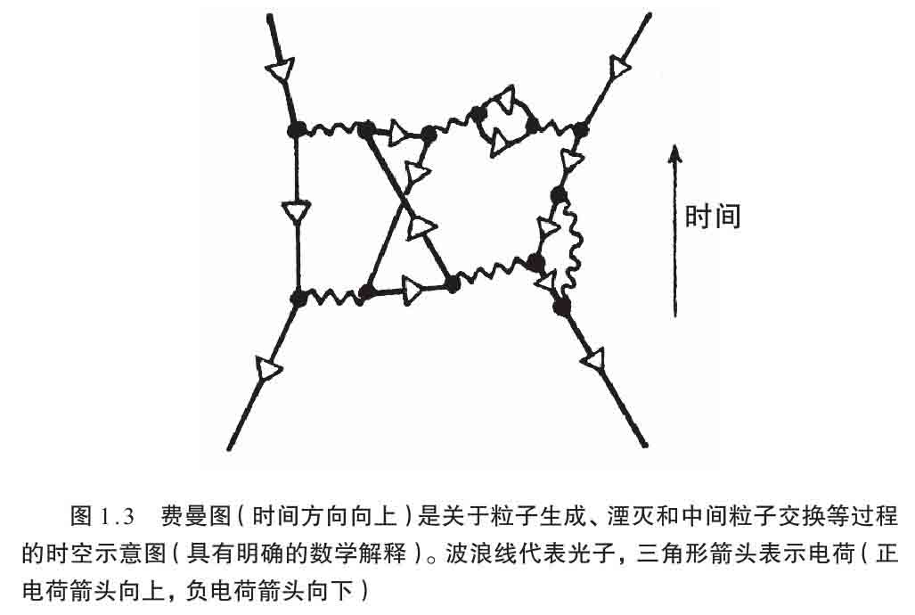 通过上面这些过程,通常可以从QFT得到异常精确数字。例如,现在有一个标准的QFT方法来计算电子的 磁矩 。多数粒子(除了有电荷以外)还表现为一个小磁体,这些粒子的磁矩是其磁性的度量。狄拉克最先直接从他的电子的基本方程(1.1节引介过)预言了电子磁矩,结果与精确的实验观测几乎一样。然而,后来发现数值需要间接来自QFT过程的修正,它们必须包含在直接的单电子效应中。QFT计算的最终结果是狄拉克原先的“纯”预言值的1.001159652…倍[Hanneke et al.2011]。精确得难以置信——正如费曼[1985]说的,这相当于从纽约到洛杉矶的距离确定到一根头发丝!这有力支持了 重正化的 电子和光子的QFT理论(叫 量子电动力学 ,简称QED)——它用狄拉克理论描述电子,用麦克斯韦电磁方程(见1.2节)描述光子,而其相互作用遵从标准的洛伦兹方程(它描述带电粒子对电磁场的响应)。在量子的语境中,后者源自外尔(Hermann Weyl)的 规范程序 (见1.7节)。现在你看到了,理论与观测符合到了异乎寻常的程度,这告诉我们理论存在着某种深层的真实的东西,尽管现在它作为一个数学纲领还未达到完美的和谐。