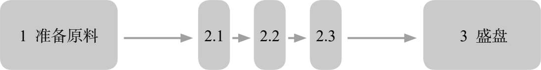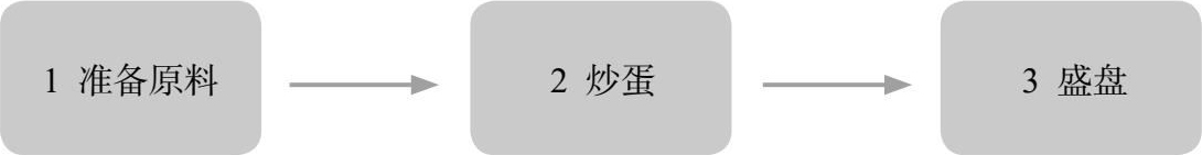 分解问题不限于一个层次。大步骤可以再继续分解细化。比如,如果一个人还是不理解怎么炒蛋,那么我们可以把上面的步骤细化,第二步“炒蛋”可以再次分解为:(2.1)把油下锅,(2.2)把蛋下锅,(2.3)翻炒5分钟。这三个小步骤也需要串行(见图1-4)。