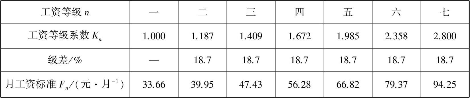 国家原规定的某类工资区建筑工人工资标准及工资等级系数见表3.1。
