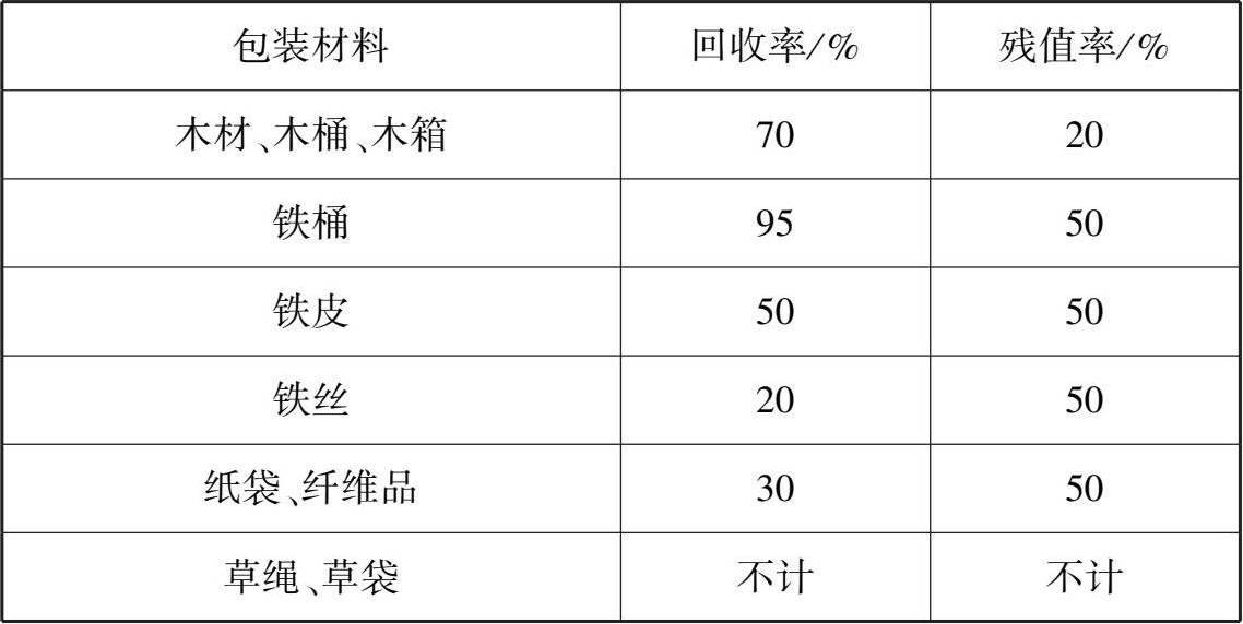 ④包装品的回收价值:包装品的回收价值=包装品原价×回收率×残值率。