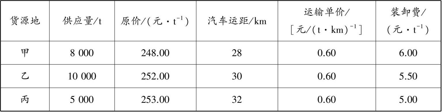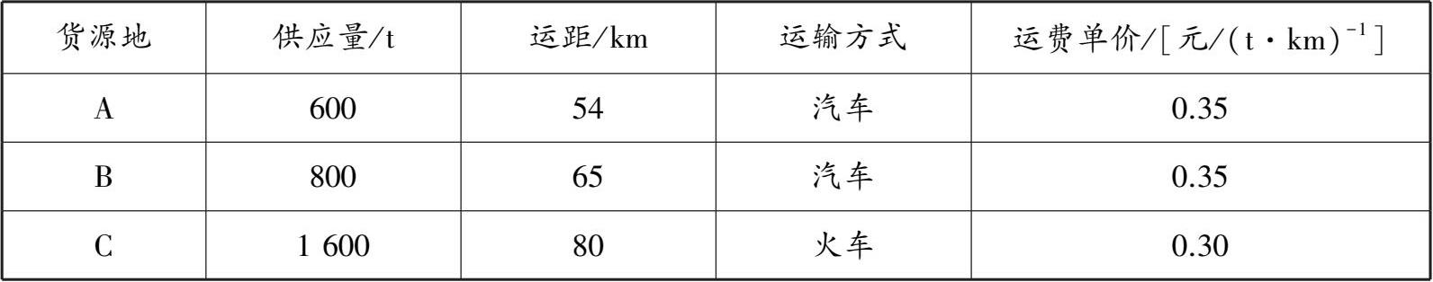 【例3.4】 某材料有3个货源地,各地的运距、运费见表3.2,试计算该材料的平均运费。
