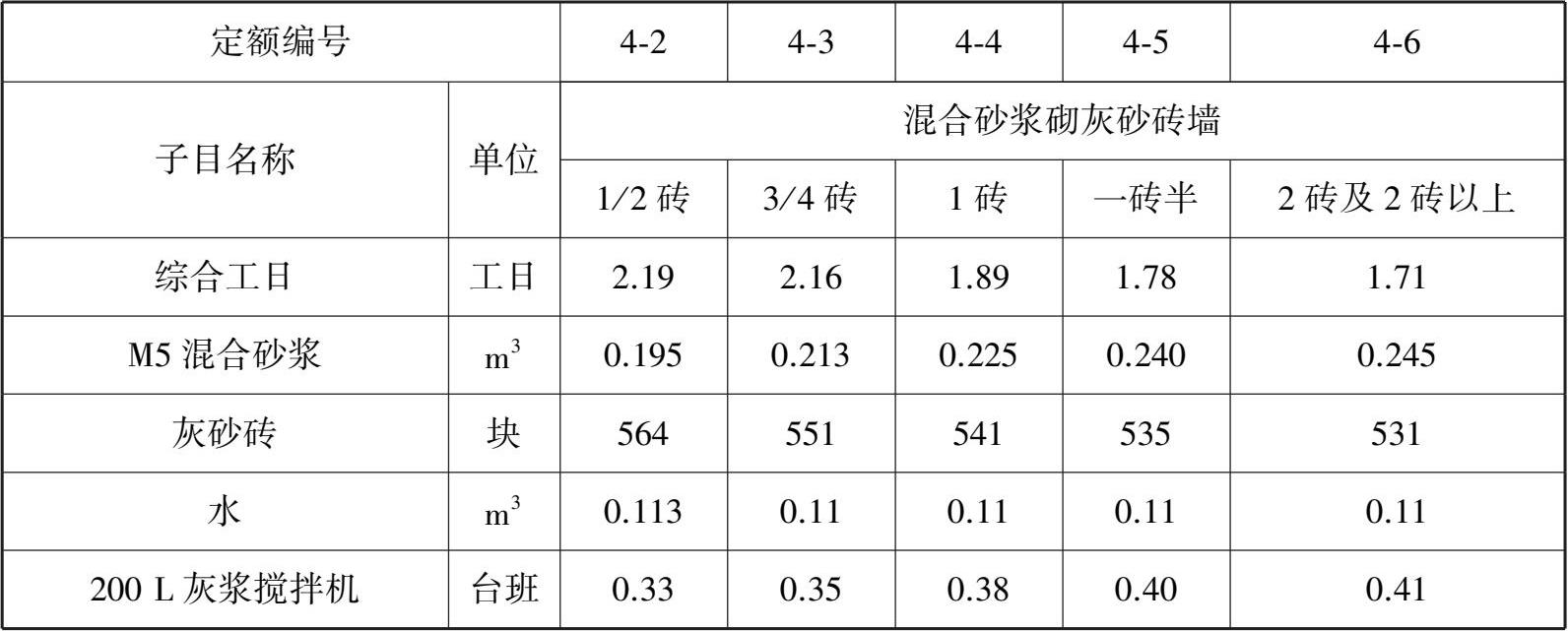 下面以砌筑部分—砌砖小节—砌灰砂砖墙为例,演示预算定额的编制过程。