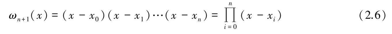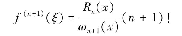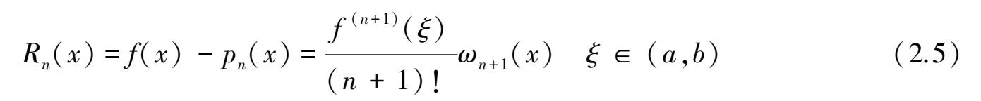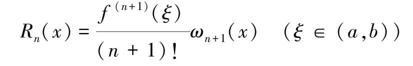 定理2.2 (误差估计)设f (n) (x)∈C[a,b],任意x∈(a,b),f (n+1) (x)存在,x 0 ,x 1 ,x 2 ,…,x n 为n+1个互异插值节点,p n (x)为f(x)在[a,b]上的n次插值多项式,则对任意x∈[a,b]有余项