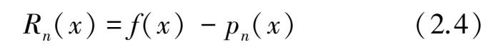 而在其余点x处,一般说来会有误差,这个误差称为插值多项式的插值余项或截断误差,记为R n (x),即