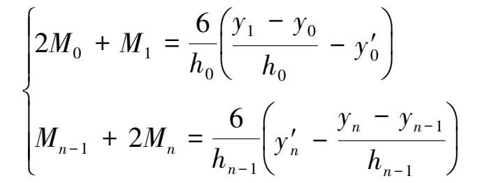 给出了n+1个约束。从而总共给出了4n-2个约束,与待定参数相比还少2个约束。为了确定S(x),在区间[a,b]的端点处补充两个条件,称为边界条件。常用的边界条件有下列3种。