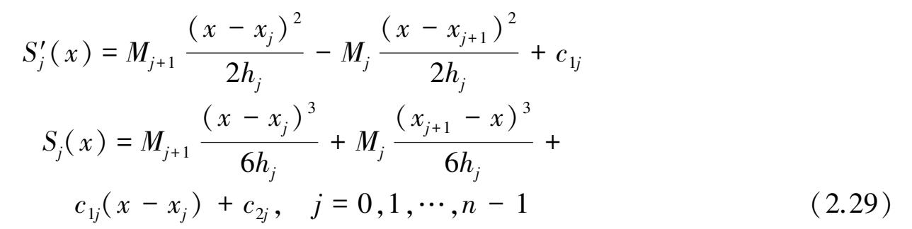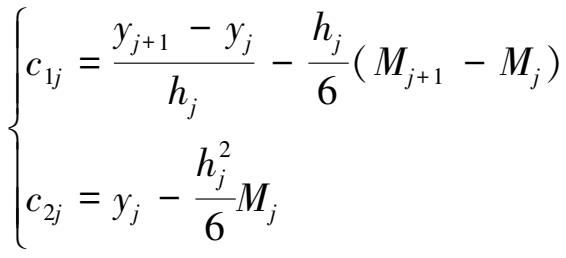 根据插值条件S j (x j )=y j ,S j (x j +1 )=y j +1 确定出任意常数c 1 j ,c 2 j ,