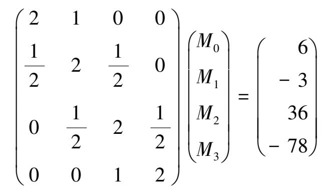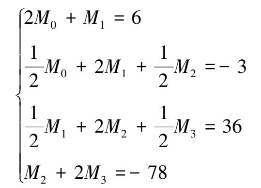 注: 若是第二种边界条件,则M 0 ,M n 是已知的。