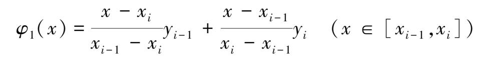 作为f(x)在[x i -1 ,x i ]上的近似表达式,则称φ 1 (x)为f(x)的分段线性插值函数。