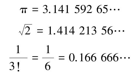 在数值计算过程中还会用到一些无穷小数,例如无理数和有理数中某些分数化出的无限循环小数,如
