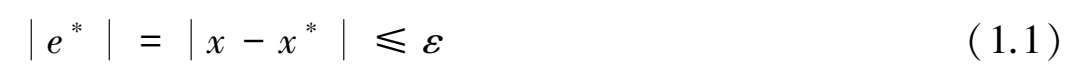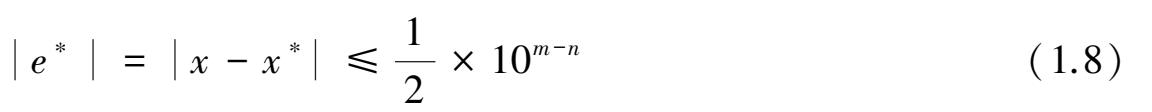 注: ①若式(1.7)中的x * 是x经四舍五入得到的近似值,则x * 具有n位有效数字。例如,3.1416是π的具有五位有效数字的近似值,它精确到0.0001。