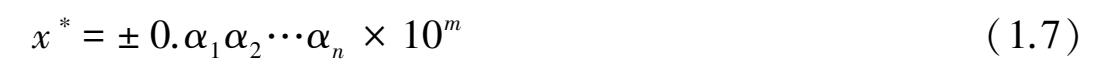 其中,α 1 ,α 2 ,…,α n 都是0~9中的任一整数,且α 1 ≠0;n是正整数,m是整数。若x * 的误差限为
