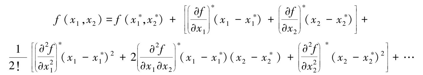 假设有二元可微函数y=f(x 1 ,x 2 ),设 分别是x 1 和x 2 的近似值,y * 是函数值y的近似值,且 ,则二元函数f(x 1 ,x 2 )在点 处的泰勒展开式为