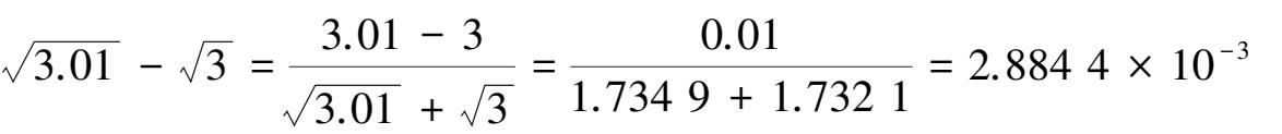也能达到结果具有5位有效数字的要求,而这时 所需的有效位数只要5位,远比直接相减所需有效位数(8位)为少。