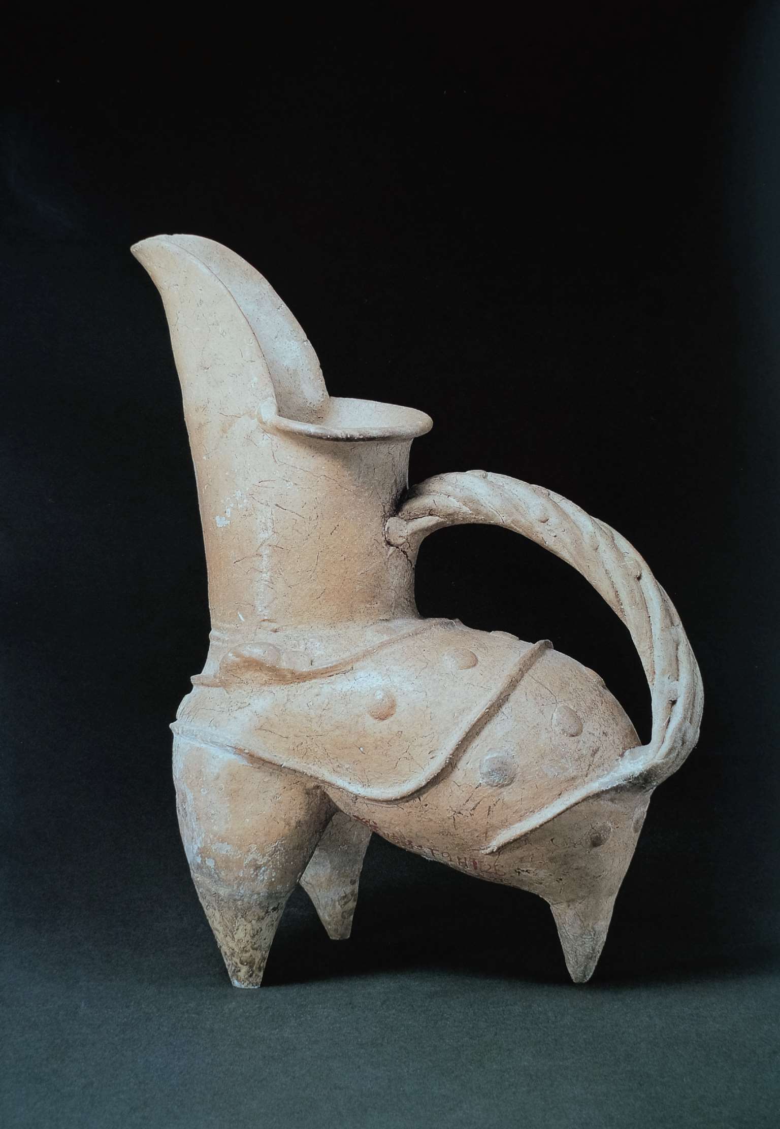 图1.5和图1.6这两件的基本特点一致:三个袋足,有如鸟嘴的口部,如尾的把手,直挺的器身。连装饰都很像:三道弧线。但差异又是巨大的;前者有如俯身的动物,后者更像直立的人;前者趋身向前,后者昂首向上。尽管差异巨大,但同样展现出奇异的想象与惊人的美。