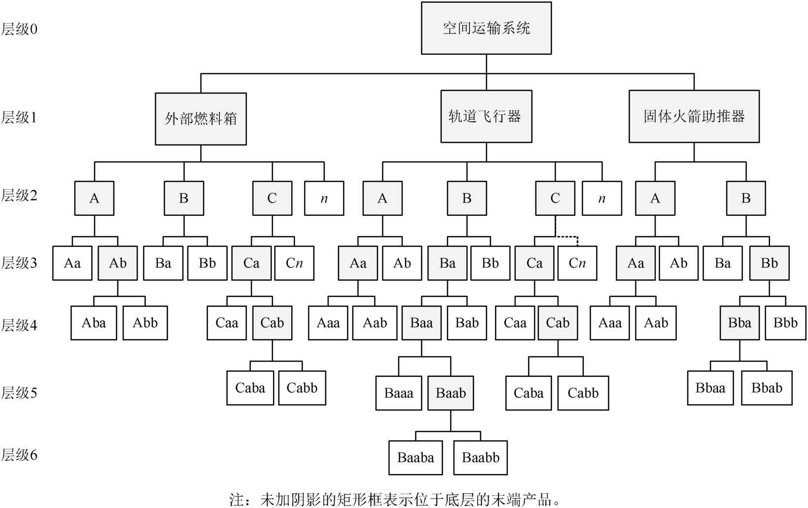 图2.3-6 产品层级划分,第2层:轨道飞行器概念化产品分解结构示例