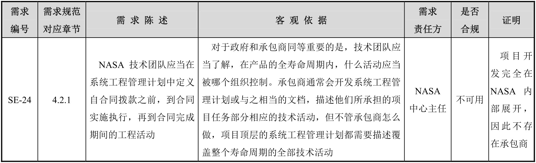 针对每个项目或工程,NPR 7123.1中的每一项需求都要评估其可用性。例如,如果项目完全是在NASA内部开发的,NPR 7123.1第4章