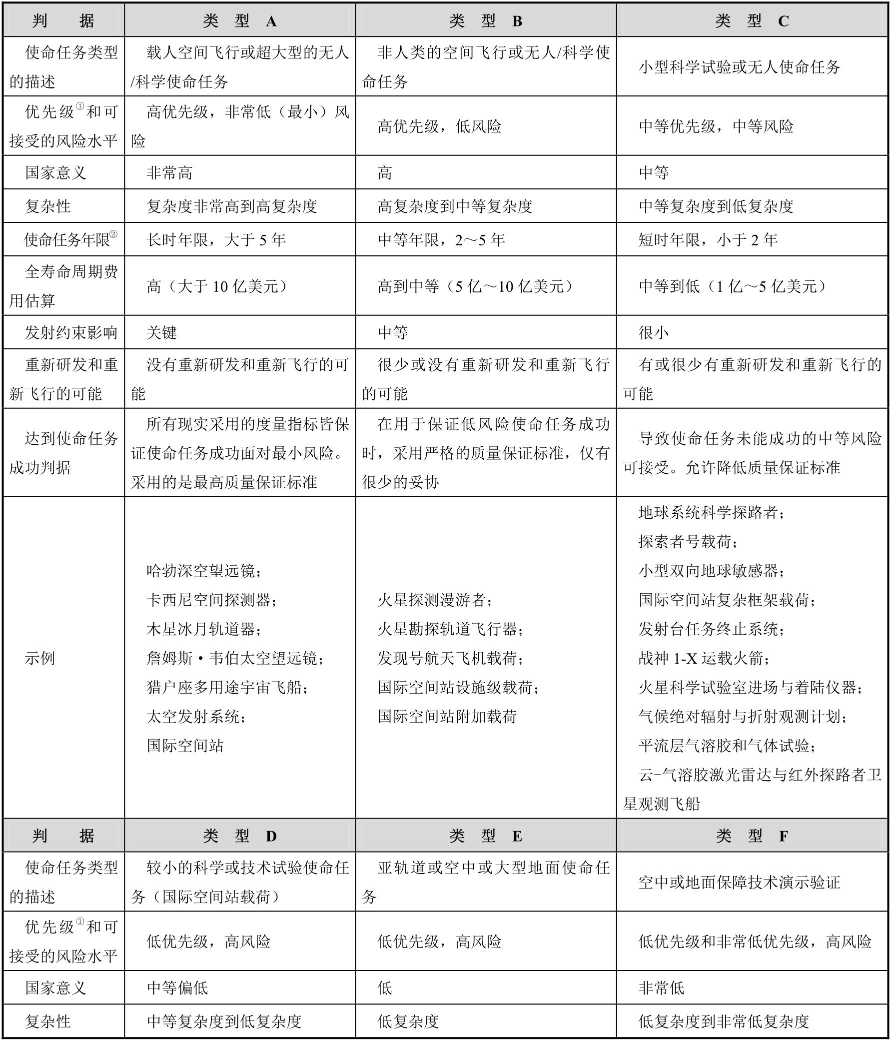 NPR 8705.4《NASA载荷的风险分类》试图针对工程和项目确定风险分类。该文献为判定准则建立了控制基线,使得用户能够为NASA载人和无人发射系统及运输工具的载荷确定风险分类水平。该文献同时也是了解和定义剪裁判定准则的起点。