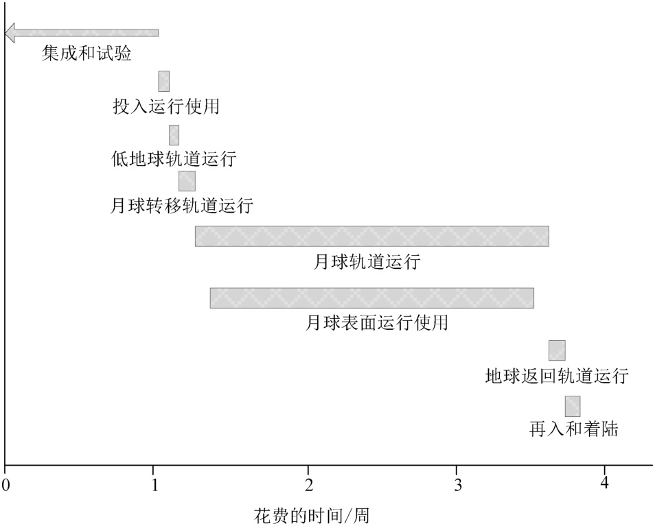图4.1-5 探月飞行寿命周期早期的时间基线示例