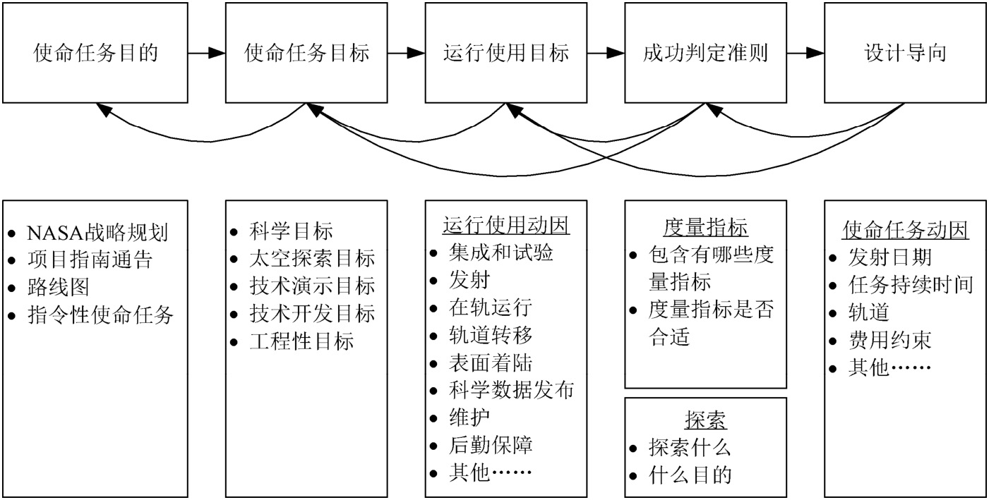 开发利益相关者期望与明确使命任务授权和使命任务战略目标同时开始。使命任务授权随使命任务类型不同而改变。例如,科学试验使命任务通常根据NASA科学试验使命任务主管部门的战略规划启动,而空间探索使命任务可能根据美国总统行政指令启动。理解使命任务的目标有助于确保项目团队朝一个共同的目标努力工作。这些目标形成了使命任务开发的基础,所以需要清晰地定义和关联。