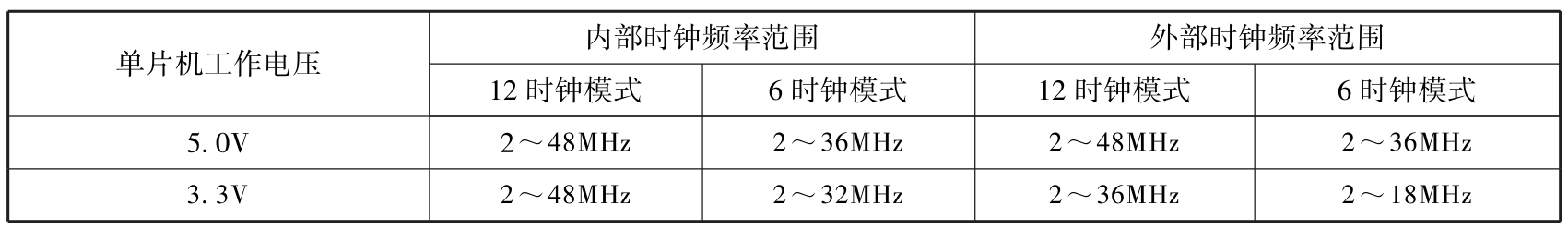 表1-2 STC89C5xD+和STC89LV5xD+单片机时钟频率范围