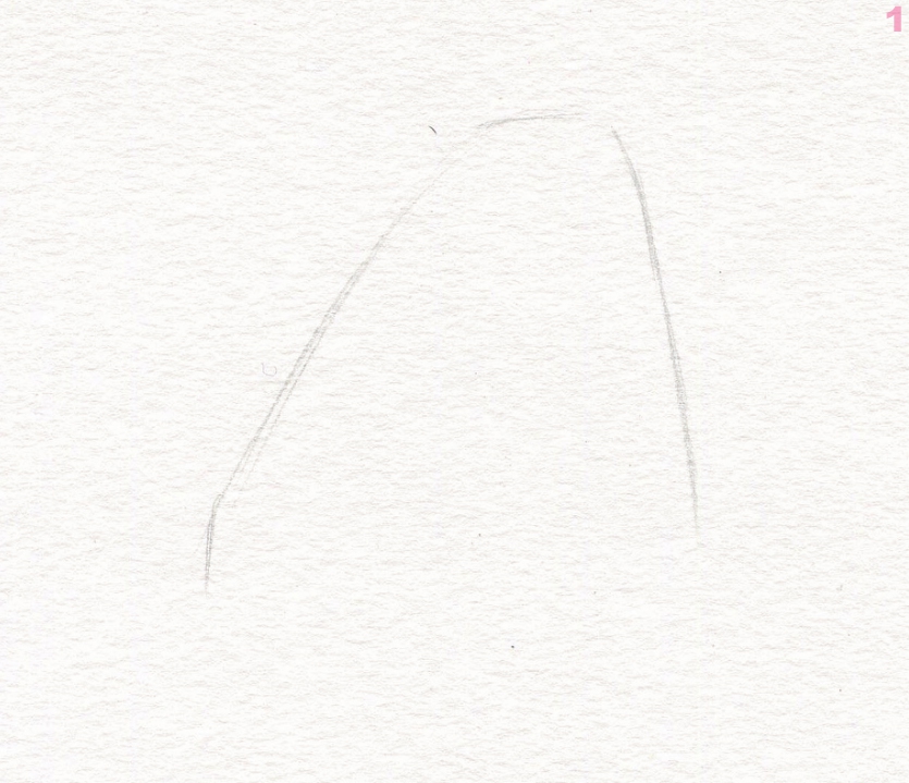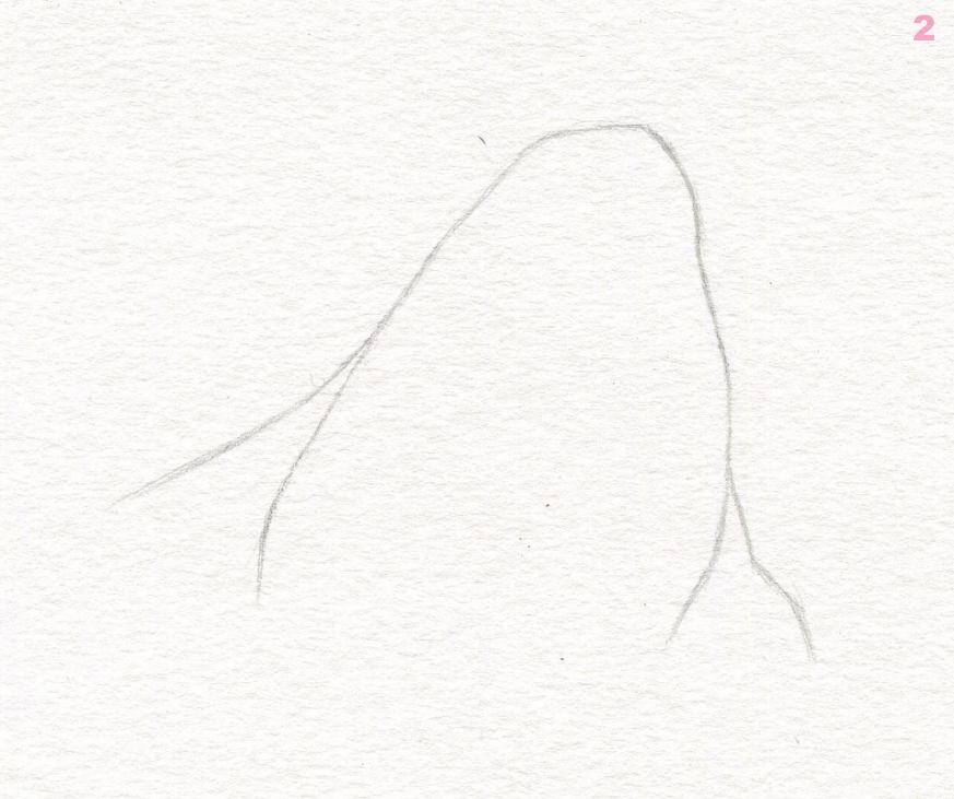 在纸的中间画出猫咪耳朵的外形,用短线概括出来即可。