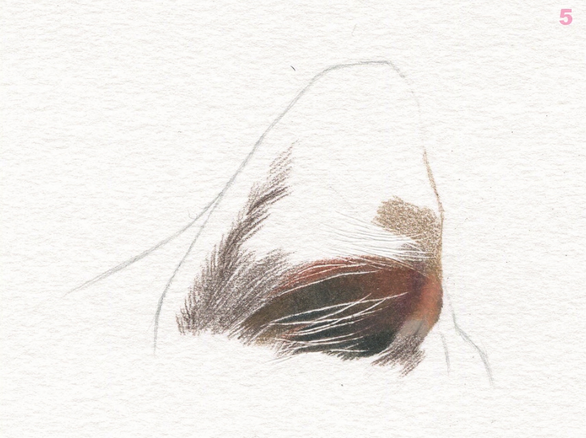 继续刻画耳朵内部颜色较深的位置,局部结合一点红棕色,颜色之间的过渡要柔和。 PC1092 、 PC1093 、 PC948 、 PC941 、 PC945 、 PC1081 、 PC1033 、 PC935
