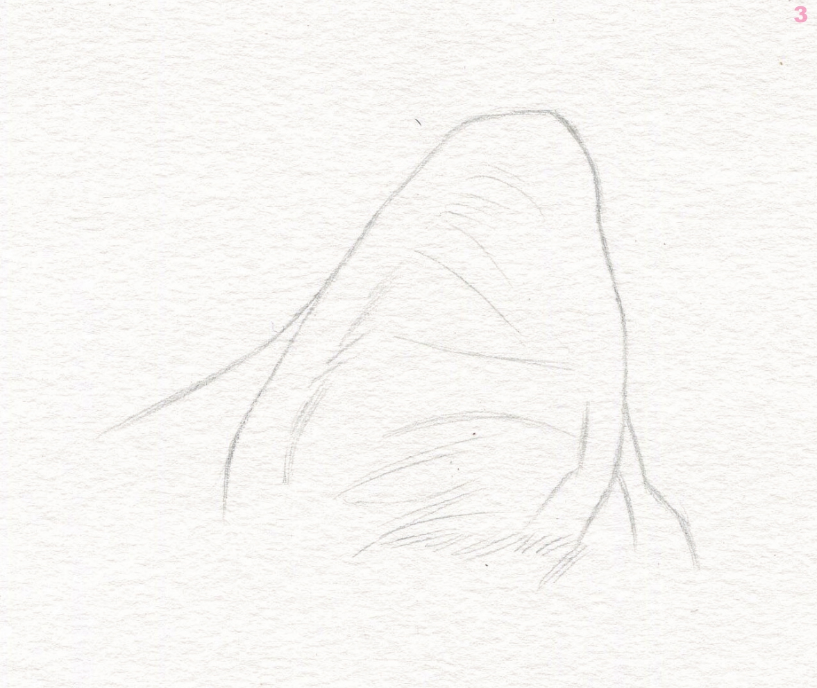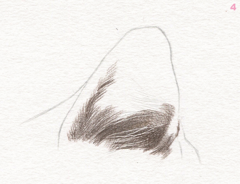 用线描画出耳朵内部毛发的质感。
