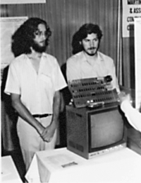 1976年,丹尼尔·科特基和乔布斯在大西洋城举行的个人电脑节上展示Apple I