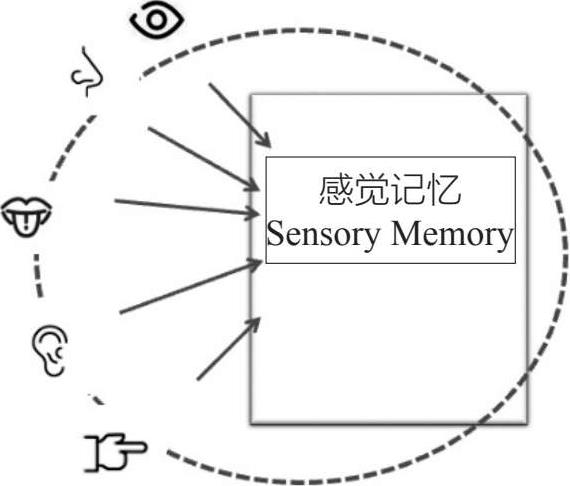 (1)记忆的发生始于外界刺激,如图 2 所示,当外界刺激,比如一道光线、一种味道、一个棒棒糖、一个声音、一个气泡等,引起学习者的注意(attention),就可能会激发学习者的视觉、嗅觉、味觉、听觉、触觉等感觉,从而形成转瞬即逝的感觉记忆(Sensory Memory)。但是,如果这些外部刺激没有第一时间引起学习者的注意,而是直接被学习者忽略,就不会形成感觉记忆,比如在学习过程中