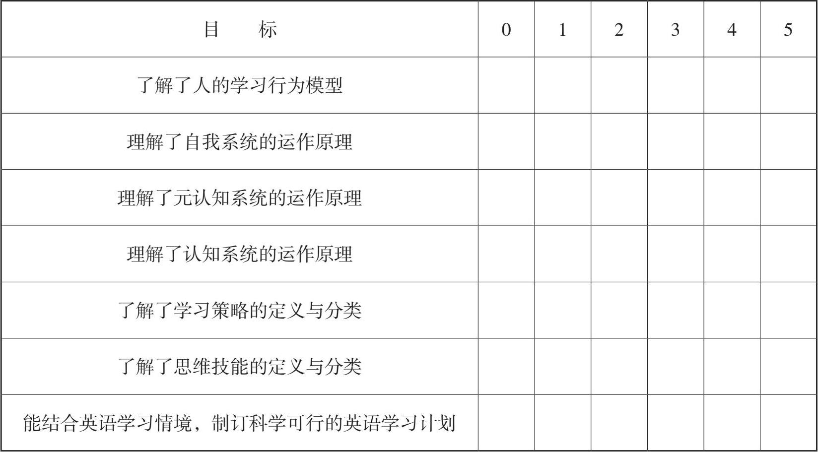 2. 目标达成自评(使用 0~5 分进行评价,0 表示完全没有达成,5 表示完全达成)通过本章学习,我____ F6dsiz0vq73U9P4FB8an9JHA6JyU+zTCKkMvgcsE2DV/wRqxqK4Ii4u6ukm7r8Ls