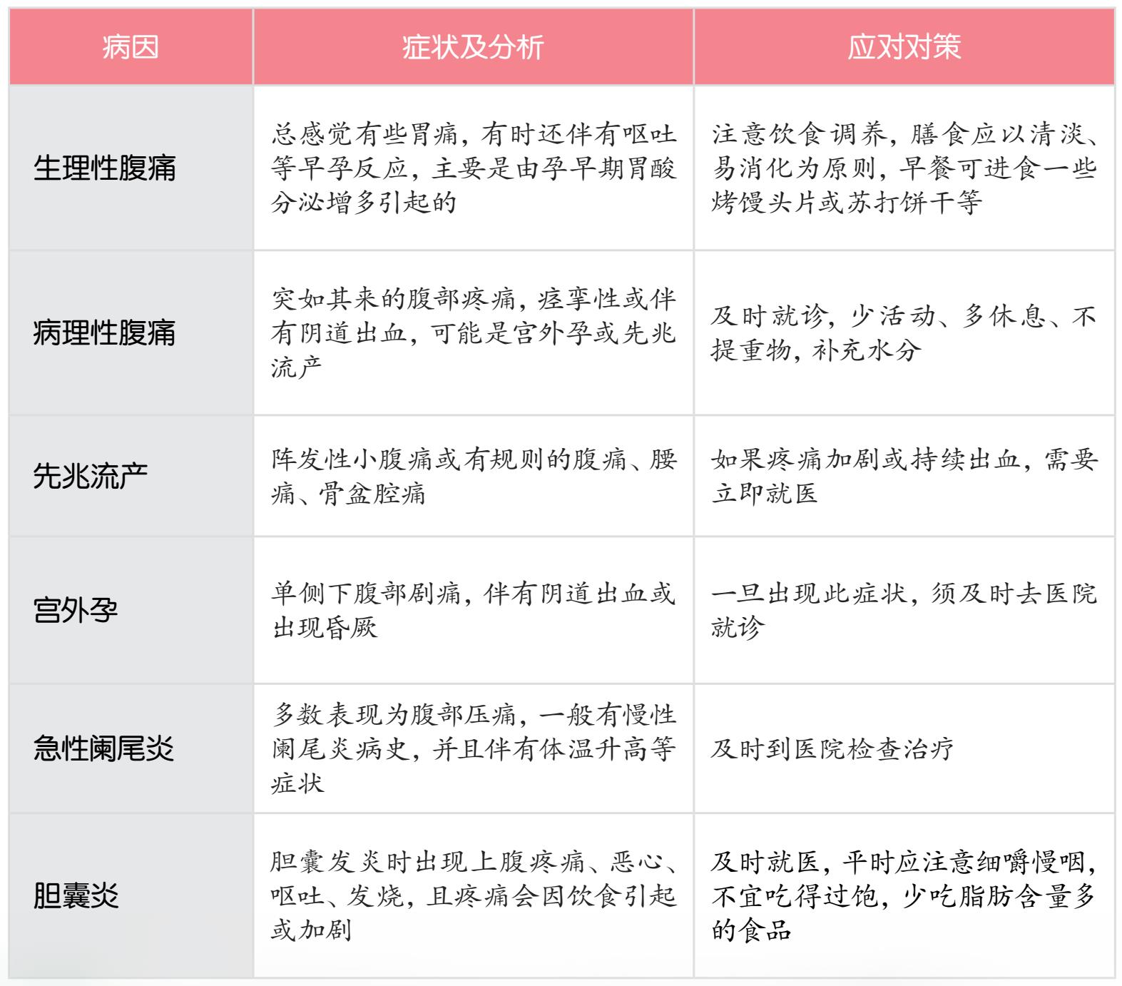 在孕早期,有些腹痛是生理性的,即因为怀孕所引起的正常反应,但有些却是病理性的,可能预示着流产等危险的发生。
