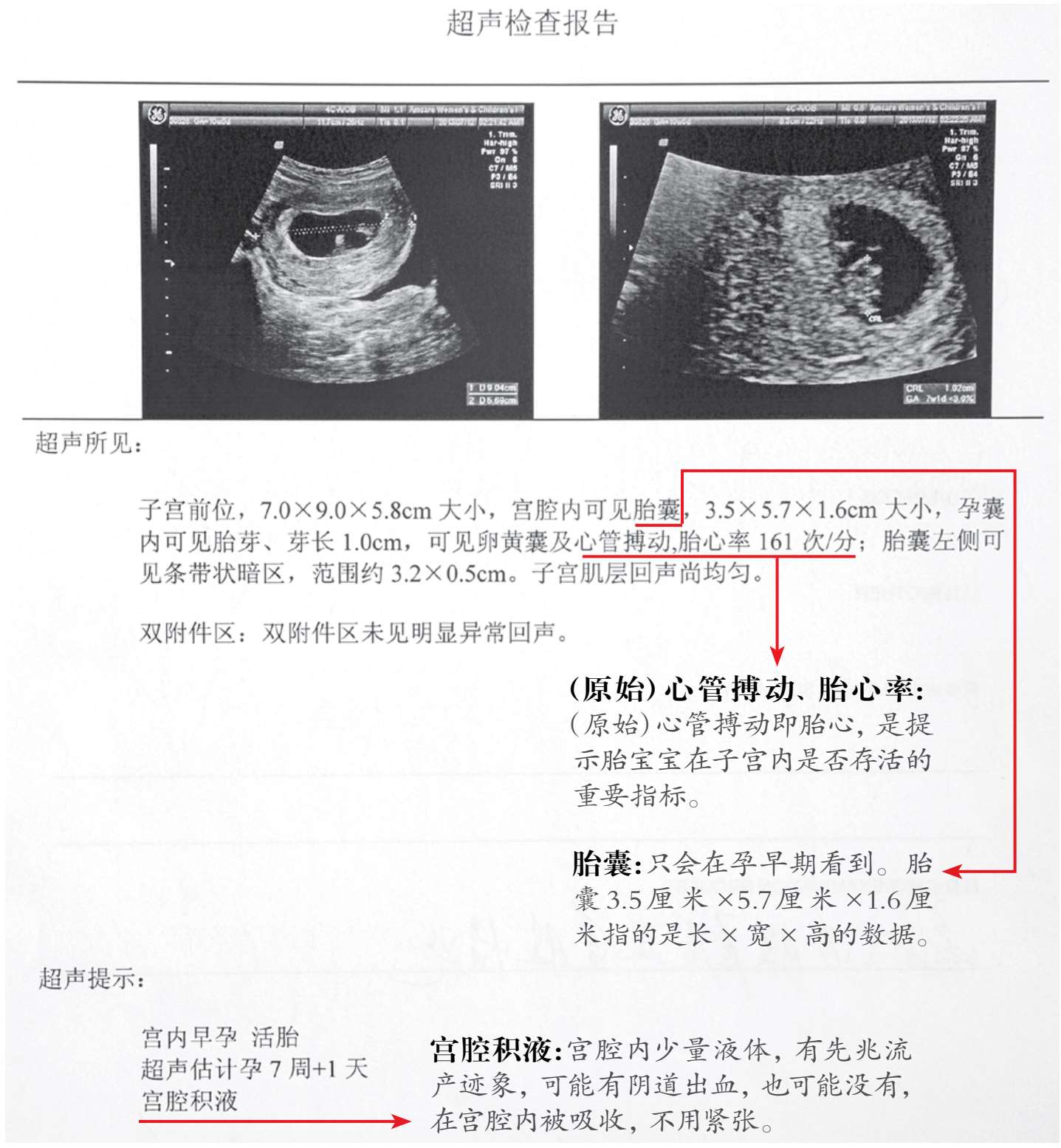 从以上结果看,宫内可见胎囊、胎芽和胎心搏动,根据胎囊的大小和胎芽长度判断为已经怀孕7周+1天,宫内早孕。