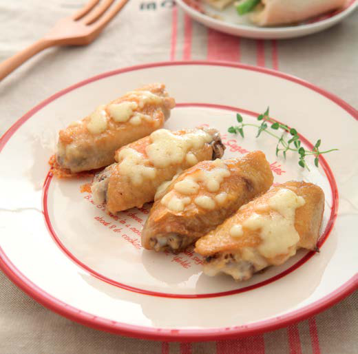①将鸡翅清洗干净,并将鸡翅从中间划开,撒上盐腌制1小时。②将黄油放入平底不粘锅中熔化,待油温升高后将鸡翅放入锅中。③用小火将鸡翅彻底煎熟透,然后将奶酪擦成碎末,均匀撒在鸡翅上。