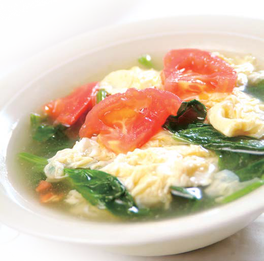 ①番茄洗净切片;菠菜洗净,切成4厘米长的段;鸡蛋打散。②锅中油热后,放番茄片煸出汤汁,加入适量水烧开。③放菠菜段、蛋液、盐,再煮3分钟,出锅时滴入几滴芝麻油,撒上葱末即可。